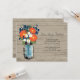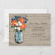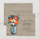 Convite Azul e Laranja Mason Jar de Madeira | Recepção