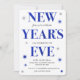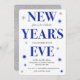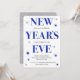Convite de festas de Ano Novo com azul cintilante e prata em fundo de papel branco. Personalize com todos os seus detalhes para informar o pessoas sobre o seu evento!
