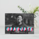 Convide convidados para comemorar o seu formando com nossos convites para festas de formatura de fotos. Os convites exclusivos para a festa de formatura apresentam a foto do formando com "Formando", exibidos em letras azuis, brancas e anaglíficas cor-de-rosa. Personalize a frente dos convites de festa de formatura exclusivos adicionando o nome do formando, o nome da escola e o ano de graduação. A parte traseira do convite apresenta os detalhes da sua festa de formatura com um fundo de faixa diagonal azul e branca.