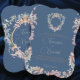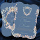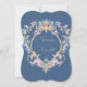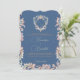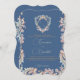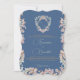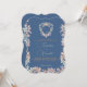 Um convite de casamento temático para uma república de vintage opulente. Apresentando belas cristas enquadradas nos seus nomes e monogramas. Azul empoeirado com tons de púrpura azul e matizes cor-de-rosa refletindo os tempos de regência. Vintage e design de casamento elegante.