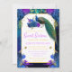 Design de Pavão Floral Azul e Púrpura com flores azuis e roxas e um fundo de fantasia