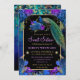 Convite Azul Elegante e Púrpura Floral Doce 16