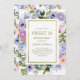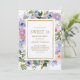 Azul empoeirado e cor d'água púrpura floral Sweet 16 convite de aniversário com folhas verdes e uma armação de ouro. O texto é completamente personalizável, portanto, este cartão pode ser alterado para qualquer idade.