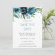 Convite Azul Empoeirado 2 Floral Save / Mudar a Data 3 Gra