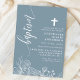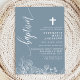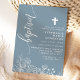 Convite Azul Empoeirado Branco Floral Elegante Script Bati