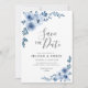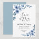 Convite azul empoeirado floral salvar a data