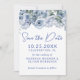 Azul empoeirado no floral romântico branco no floral azul claro Salve o cartão de data. Personalize nomes, datas e informações.