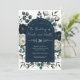Convite Azul Escuro e Branco Casamento Moderno Floral Verd