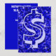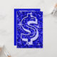 Convite com um design moderno impresso com estrelas espalhadas sobre um plano de fundo estilizado de "aparência sequencial" e '$' em tons de azul. Um design personalizável para você personalizar com seu próprio texto, imagens e ideias. Observe que esta é uma imagem de arte digital impressa. O produto não brilha ou contém glitter ou sequências reais.