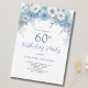 Convite de aniversário floral azul 60º. Fácil de mudar o texto. Floral Elegante de aquarela.