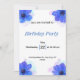 Celebrar um aniversário especial com este elegante convite de tema floral. Com flores azuis vibrantes nos cantos e sotaques de aquarela pastel macio, esse design oferece uma sensação moderna, mas serena. As matizes roxas, cor-de-rosa e azuis dão ao cartão um toque delicado, perfeito para aniversários de qualquer idade. Personalize este modelo com sua própria mensagem e detalhes, fazer-o exclusivo para a ocasião. Quer seja para um aniversário de um adulto ou de uma criança, este convite irá certamente chamar a atenção. Perfeito para imprimir ou compartilhar digitalmente! Principais recursos: design floral azul vibrante com aquarelas pastel moles Totalmente personalizável com seu próprio texto e detalhes de eventos Adequados para aniversários de todas as idades Ideal para uso impressão e digital