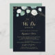 Este azul floral de ouro rústico que fazemos de novo jurar convite de renovação é perfeito para uma simples celebração de renovação de votos de casamento. Este design artístico apresenta folhagem verde de ouro, feita à mão, e cor d'água, eucalipto, em um fundo azul escuro, inspiradora beleza natural.