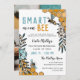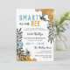 Convite à festa de formatura Floral para uma festa de formatura tematizada de abelhas com o Smart As Can Bee, juntamente com o mel, abelhas e flores bonito em azul. Adicione uma foto ao fundo. O convite para festas de formatura para uma festa de formatura pré-escolar personalizada com uma foto no verso. Convite para comemoração do jardim de infância com abelhas produtoras de mel.