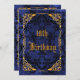 Convite Azul gótico e Dourado enquadrado no 18º aniversári