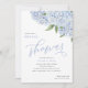 Esta bela design apresenta flores azuis de hydrangea e seu texto personalizado. Use o formulário modelo para adicionar suas informações.