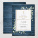 Com delicadas folhas de folhagem em aquarela sobre um fundo de madeira rústica azul e um elegante crucifixo dourado, este convite de batismo ou batizado chic pode ser personalizado com suas informações especiais. Criado por Thisisnotme©