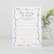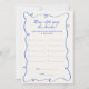 Cartão de jogo Quirky e caprichoso 'Quantos anos tinha a noiva?' com fonte azul manuscrita com um quadro verde e texto totalmente personalizável. O cartão de jogo baixável vem em um esquema de cores divertidas de azul e névoa de cobalto.