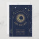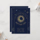 Mística celestial personalizada, exceto a data que apresenta o arco com o céu da meia-noite galáxia, poeira estrela, lua crescente e outros símbolos astrológicos em azul marinho e ouro e citação escrita "CAUSA NO CHEIO CÉU DAS ESTRELAS EU VI VOCÊ". Este cartão é facilmente editável. Se precisar de ajuda para a personalização desta placa ou se precisar de mais produtos correspondentes para esta coleção, envie-me gentilmente através do Zazzle.