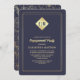 Marinho Elegante Azul | design de Padrão Floral de Folha Ouro Convites personalizados de Festa de noivado. Personalize os nomes, a data, o texto e todos os detalhes dos Convites. Convites de casamento, Convites de chá de panela, Cartões salve a data, Bridesmaid para serem Cartões de Solicitação, Cartões de Obrigado, Favoritos de Casamento e Presentes disponíveis na Categoria design Simples e Elegante de nossa Loja.