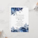 Convite de aniversário de casamento de 25 anos com flores azuis marinho e branco com acentos de prata.