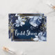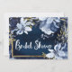 Convite Azul Marinho e Dourado Floral Aquarelado Moderno e