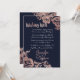 Convite Azul Marinho e Dourado Rosa Floral Poço de Desejos