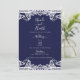 Convite Azul Marinho e Renda Branca Casamento Elegante