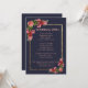 Convite Azul Marinho Rosa Floral Dourado Poço dos Desejos