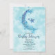 Convite Azul Místico e Meia Lua em Aquarela Prateada