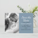 Anuncie seu grande dia em estilo com este convite moderno e elegante para Salvar a Data. Este simples e minimalista cartão "Salve a data" é perfeito para apresentar seus convidados ao seu grande dia. Apresentando uma foto em preto e branco de um casal romântico com roteiro e tipografia clássica em um fundo azul empoeirado que você pode personalizar. Esta design simples, mas bonito, é perfeita para mostrar o seu sentido de estilo e para que os seus amigos e familiares saibam que vão casar-se. Se precisar de assistência para personalizar este produto, sinta-se à vontade para me contactar usando o botão de mensagem. Ficarei encantado em dar uma mão e garantir que suas necessidades de personalização sejam atendidas a sua satisfação.
