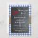 O encanto russo abunda neste quadro e no texto do roteiro "Crawfish Boil" design de Festa de noivado com um cheque azul-claro e branco e uma banda frontal de arrombamento atrás de um quadro com os detalhes em branco e um pequeno lagosta em vermelho. A parte de trás apresenta um fundo de quadro com um par de lagostas em vermelho no centro inferior. O texto do script "Crawfish Boil" não pode ser editado, mas todos os outros textos podem ser editados como desejado.