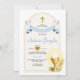 Desenhado com tons de azul suave, uma cruz dourada delicada e uma bela ilustração da Eucaristia, este convite traz um sentimento de paz e atemporalidade para o seu dia especial. Perfeito para homenagear o marco espiritual do seu filho de uma maneira refinada e sincera.