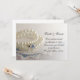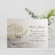 Defina um tom elegante para seus próximos núpcias quando você personalizar o bonito Blue Vintage Lace, Pearls e Ring Wedding Salve os Anúncios de Data com os nomes da noiva, noiva e data da cerimônia de noiva e casamento. Este casamento clássico e personalizado mantém o anúncio da data com uma fotografia de um colar branco de pérolas, anel de noivado de diamante e lenço azul e branco aparado de roupa de vintage com fundo branco de cetim.