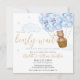 Bonito convite para chá de fraldas de garoto azul teddy com tema azul. Projetado por Thisnotme©