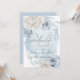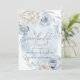 Convite Azul Poeira Marfim Flores Rústicas Elegantes