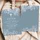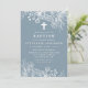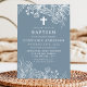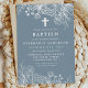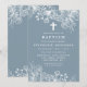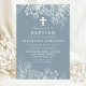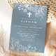 Celebre a ocasião sagrada de um batizado com este lindo convite floral azul poeirento e branco. Com intrincados desenhos florais brancos em um fundo azul poeirento suave, este convite é perfeito para convidar amigos e familiares para se juntarem a este evento especial. Os elementos florais elegantes adicionam um toque de beleza natural e graça, tornando-o ideal para uma celebração tão significativa. Personalize os detalhes para criar um convite único e memorável para o batizado do seu filho.