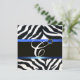 Convite AZUL PRETO BRANCO PELÚCIA ZEBRA MONOGRAMA, Safira