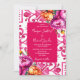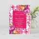 Azul-róseo Ladrilhos Majólica Mediterrâneo tema de casamento cor magenta azul-róseo modelo de convite de casamento, estilo italiano Capri, Costa Amalfitana, convites de casamento temáticos da Sicília com peônias rosa magenta laranja e folhagens boho