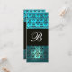 Convite AZUL ROXO PRETO DAMASCO MONOGRAMA, branco turquesa