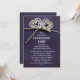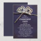 convites rústicos da festa de noivado com dois corações do amor da madeira amarrada com pouca corda (torção). Convites da festa de noivado da cor dos azuis marinhos. Todos os objetos são imagens.