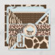 impressões Safari, girafa, zebra e chita e um padrão de bolinhas, com cupcakes de novidade e etiquetas de aparência 3D, arcos, trechos e cartão de convite de aniversário de número.