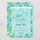 Este adorável convite aparece sob os animais marinhos em azul e verde.