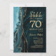 Convite Azul Teal Dourado Agate Surprise 70 de Aniversário