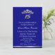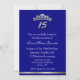Adorável convite de aniversário de Quinceanera azul e prata. Uma bonito coroa cintilante decora o topo deste convite azul. O texto gráfico do número 15 em uma aparência de tom prateado, senta sob a coroa e uma fita de tom prateado acentua o fundo dos convites. Personalize o texto, para a celebração de 15 de aniversário de suas filhas.