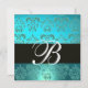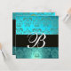 Convite AZUL TURQUESA PRETO DAMASCO MONOGRAM , água-marinh