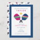 Celebre seu jogador de pickleball ou fã com esses convites de festa divertidos e vibrantes com raquetes de pickleball listradas em azul, verde e rosa. O texto é personalizável. A idade de aniversário também é personalizável. Parte de uma coleção da Parcel Studios.