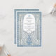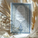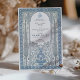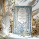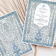 Este convite para o casamento é uma homenagem espantosa à arte clássica do azulejo Iznik, famosa pelos seus intrincados padrões e azul brilhante de cobalto. O design apresenta um arranjo simétrico de motivos florais e geométricos, lembrando um jardim esmagador dentro de uma elegante estrutura em forma de quadro. O azul profundo contrasta lindamente com o branco nítido, criando um senso de equilíbrio e harmonia que é perfeito para uma celebração matrimonial. As costas e a frente mantêm um design coeso, destacando a fusão artística da tradição e do apelo estético. Este convite é uma escolha ideal para casais que procuram misturar o seu amor pela arte islâmica com um esquema de cor de eterno no seu dia especial.