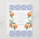 Convite Azulejo azul laranja aquarela Casamento Mediterrân