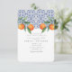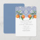 Convite Azulejo azul laranja aquarela Casamento Mediterrân