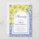 Este convite maravilhosamente desenhado apresenta uma ilustração impressionante da cor d'água de uma flor de lírio amarela e um quadro azul de azulejos cerâmicos azulejo. Você pode personalizar facilmente o texto e incluir a idade do celebrante para torná-lo ainda mais personalizado. Compartilhe a alegria com os seus amigos e família e faça deste aniversário milestone para se lembrar!